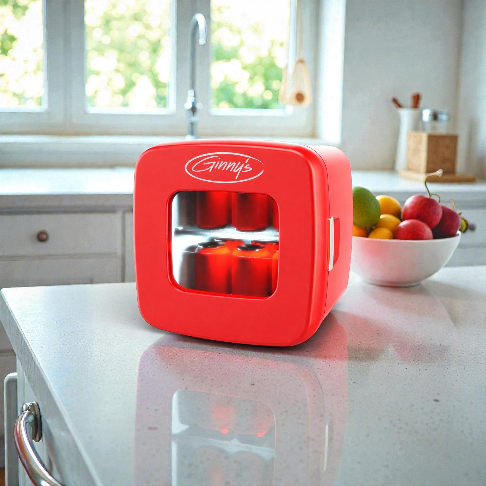 The Ginny's 12 can mini personal beverage cooler fridge is a cool and fun way to keep your favorite beverages and snacks cold. The retro design will look great with any décor whether contemporary or traditional. It is perfect for a dorm room, office or RV. This personal refrigerator is designed to easily fit where you wish to have it, whether that be a place of business table, bookshelf or desk. With a jumbo see through window you will be able to easily see any snacks and beverages you have stored for simple selection. This has a convenient carrying handle. Store your moisturizers and beauty tools inside for a refreshing take on your daily skincare routine.Ginny's Retro 12 Can 9 Liter Mini Beverage/Skincare Cooler RED MIS351-RED-GBFeatures:- Features built in interior lighting to help see what's inside.