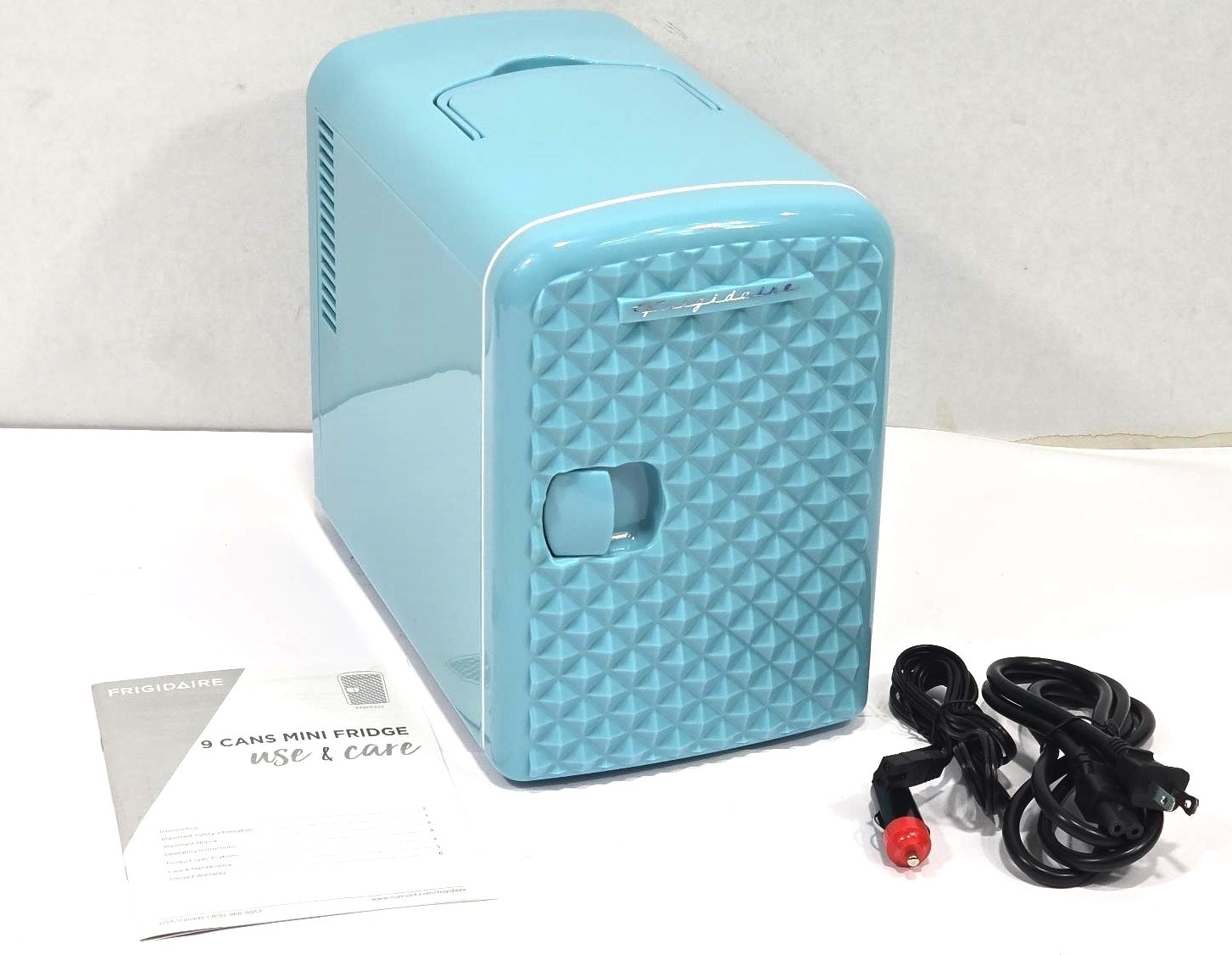 - Frigidaire 9-Can Mini Retro Beverage Fridge (Blue Color)