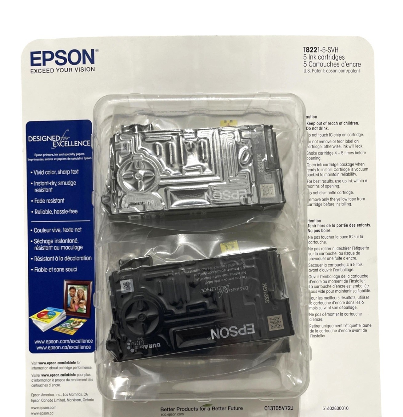 - Factory sealed retail package contains two Epson 822 black ink cartridges T822120, one Epson 822 cyan ink cartridge T822220, one Epson 822 magenta ink cartridge T822320 and one Epson 822 yellow ink cartridge T822420
