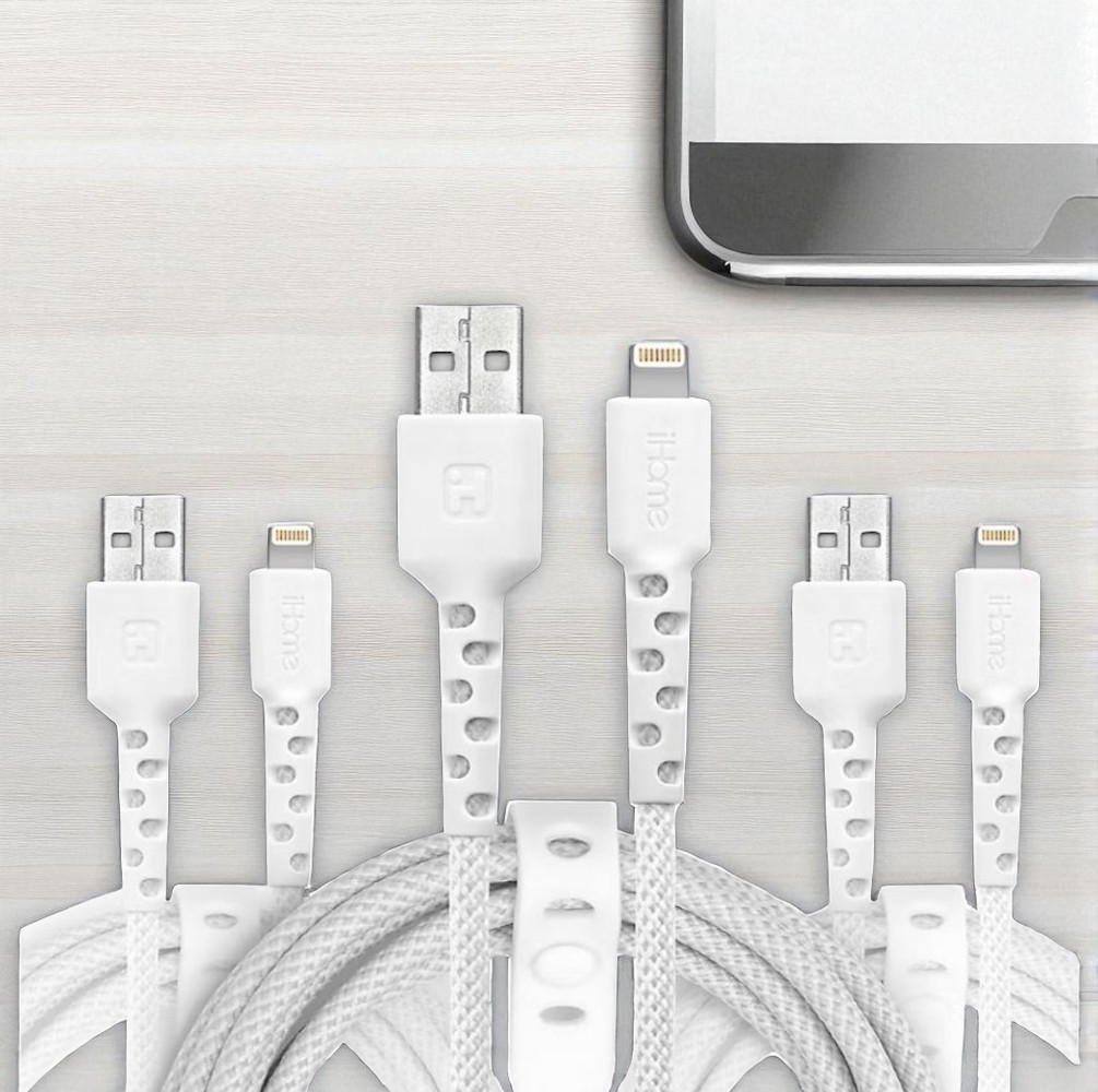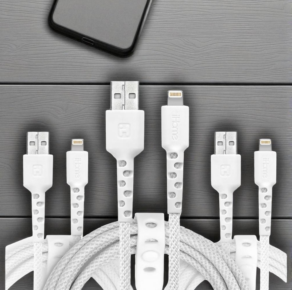 iHome TPE Durastrain Lightning to USB-A Nylon Braided Charging Cable with Silicone Wrap, 3 pk 2IHLC2289W0L2