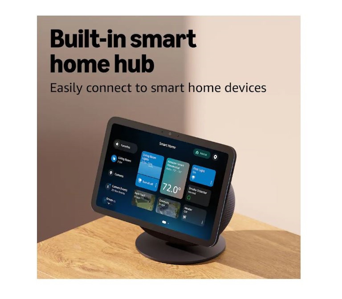 The redesigned 8.7" smart display features a vibrant HD touchscreen, built-in smart home hub, AZ3 Pro chip for powerful performance, and Omnisense technology for highly personalized experiences.