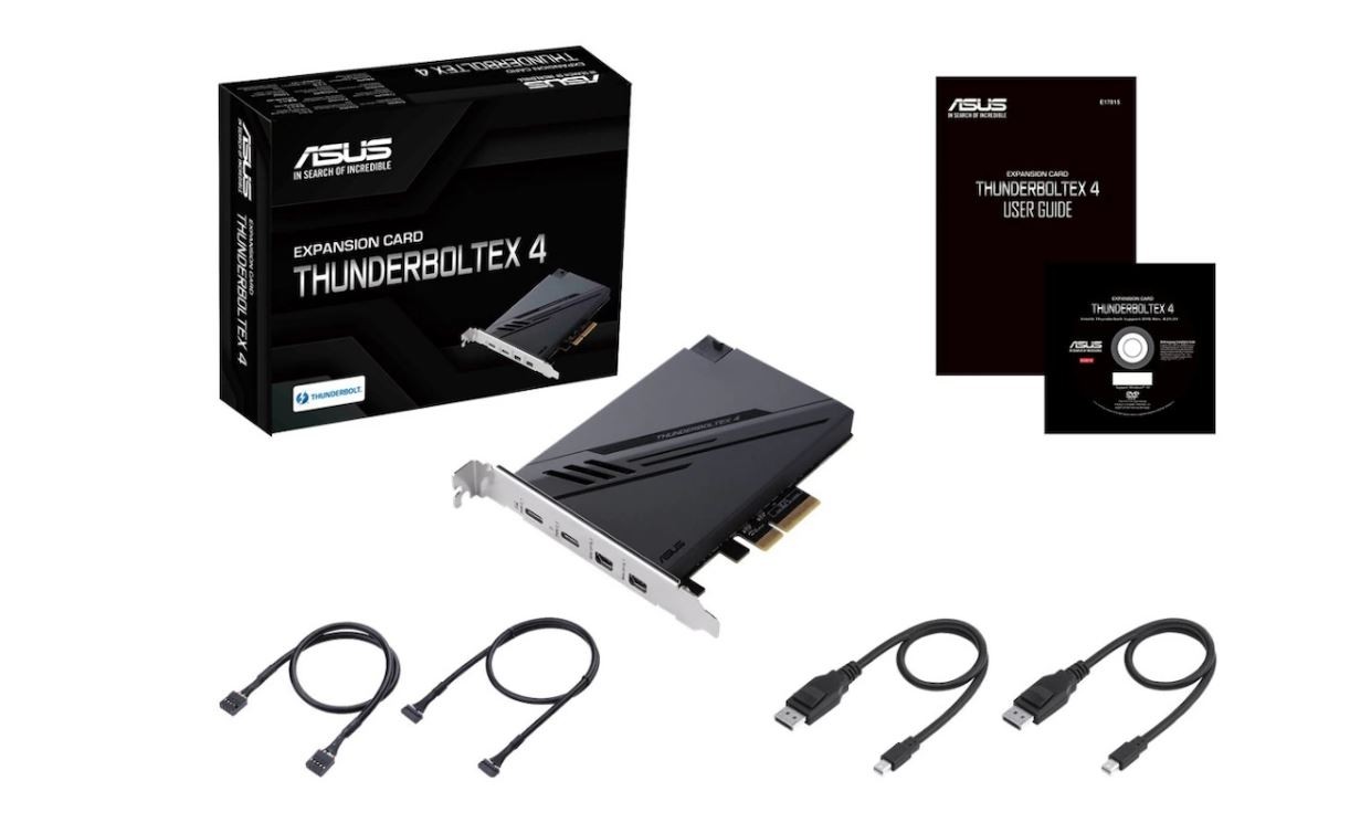 ASUS ThunderboltEX 4 is a Thunderbolt 4 add-on card that offers 40 Gbps bi-directional bandwidth, USB4 device compatibility, and a Mini DisplayPort 1.4. It supports up to five Thunderbolt devices in a daisy chain and enables up to 100-watt USB-C charging for laptops.