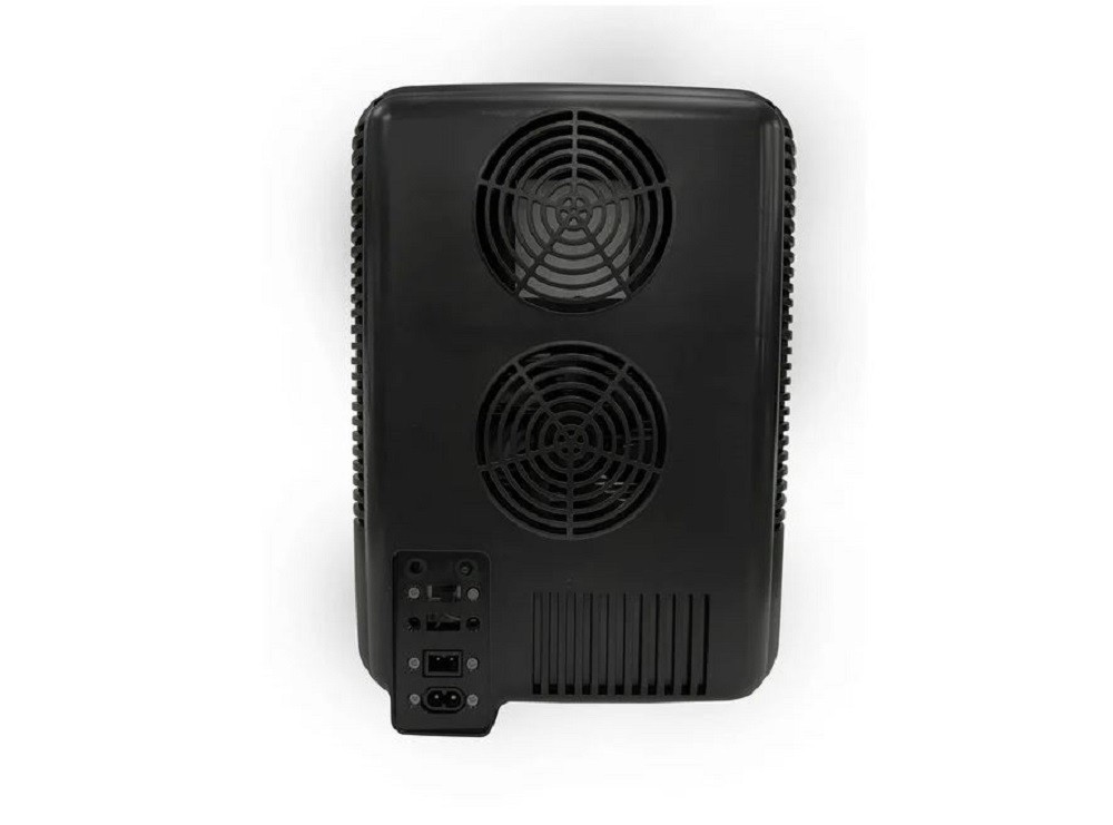 CAPACITY/ RESOURCES: Stores up to 10L / 15 Cans. Powered by 110V (AC) Wall outlet. Cools up to 20 degrees F below ambient room temperature. Plugs into a 12V Car adapter or home outlet.