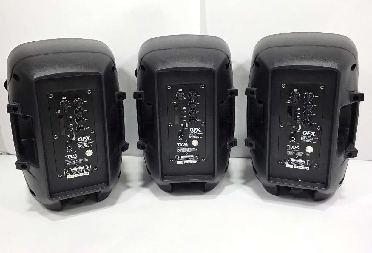 These 3x Bundle QFX 8" Translucent Portable Party Speakers are in excellent working condition. These units have been fully tested and are completely functional.