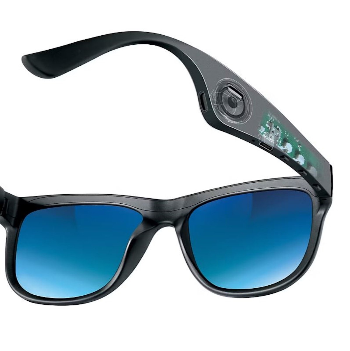 - Includes Sunglasses, speaker, charging cable, travel case, user manual