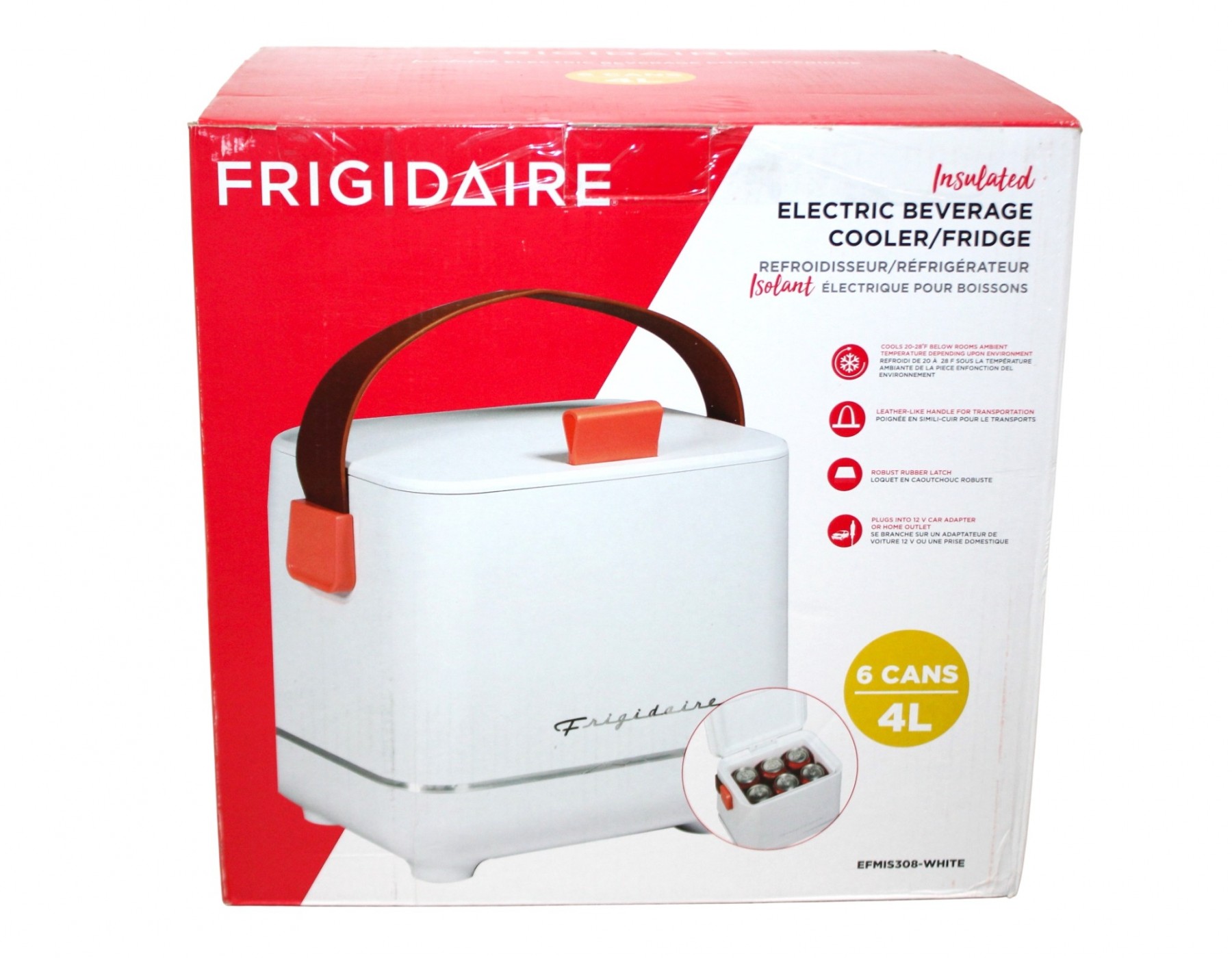 Frigidaire 6-Can Retro Top-Opening Portable Beverage Mini Fridge/Cooler EFMIS308-WHITE Specifications: