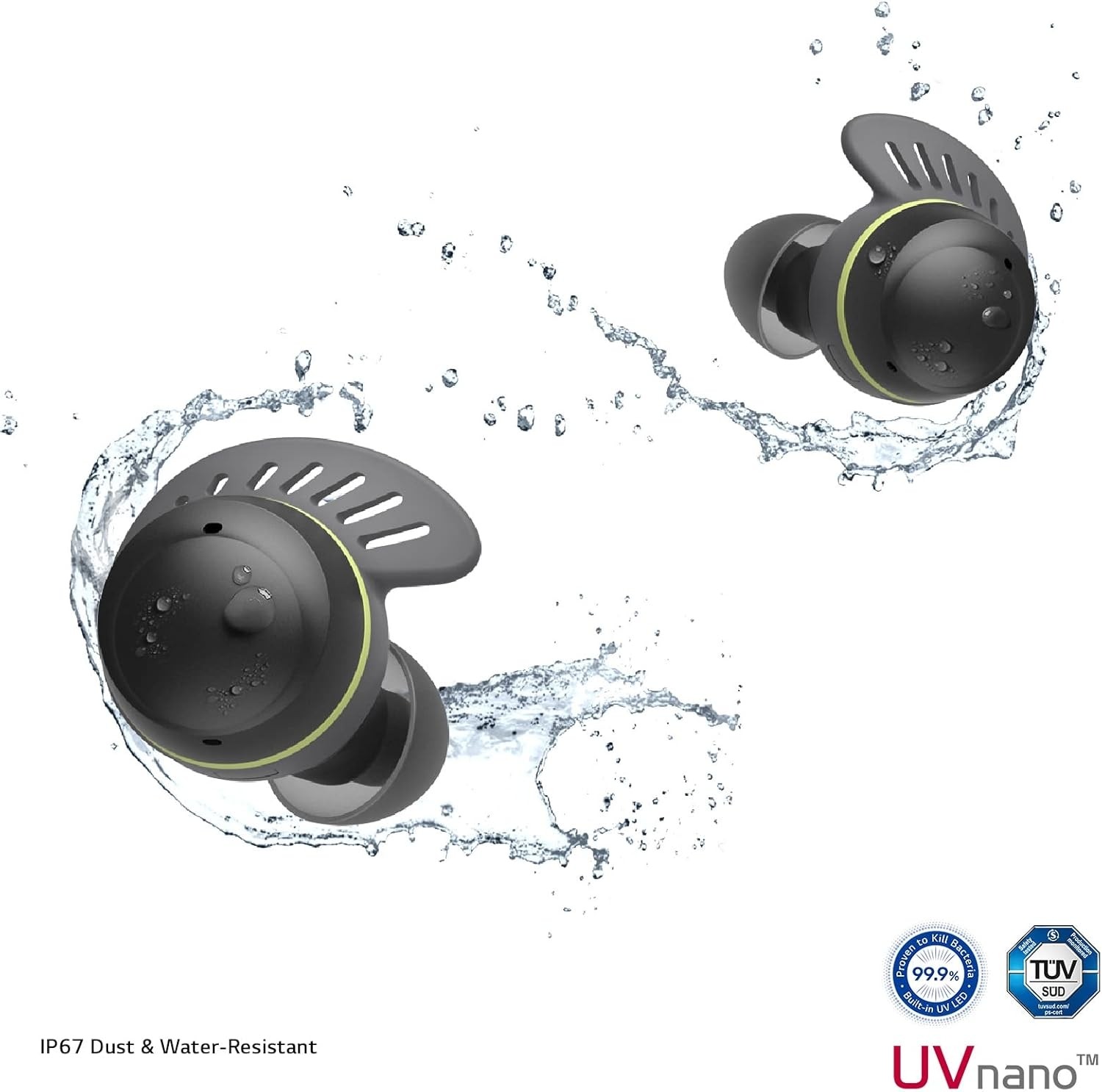 Experience an IP67 rated dust & water-resistant earbud made for your most intense workouts, even in the rain. The TONE Fre Fits ergonomic design keeps them in place and comfortable while you move. You'll be able to get in (and stay in) the zone with LG's Hybrid Active Noise Cancellation technology that uses two mics to keep outside noise out so you can focus on your fitness. Plus, the UVnano+ charging case uses UV-C light to kill 99.9% of bacteria on the eargels of the earbuds while they charge. In just 10 minutes the earbuds are sanitized and have the power to go. Plus, you can do your thing in comfort with soft, hypoallergenic medical-grade eargels that provide a comfortable fit and help prevent irritation.