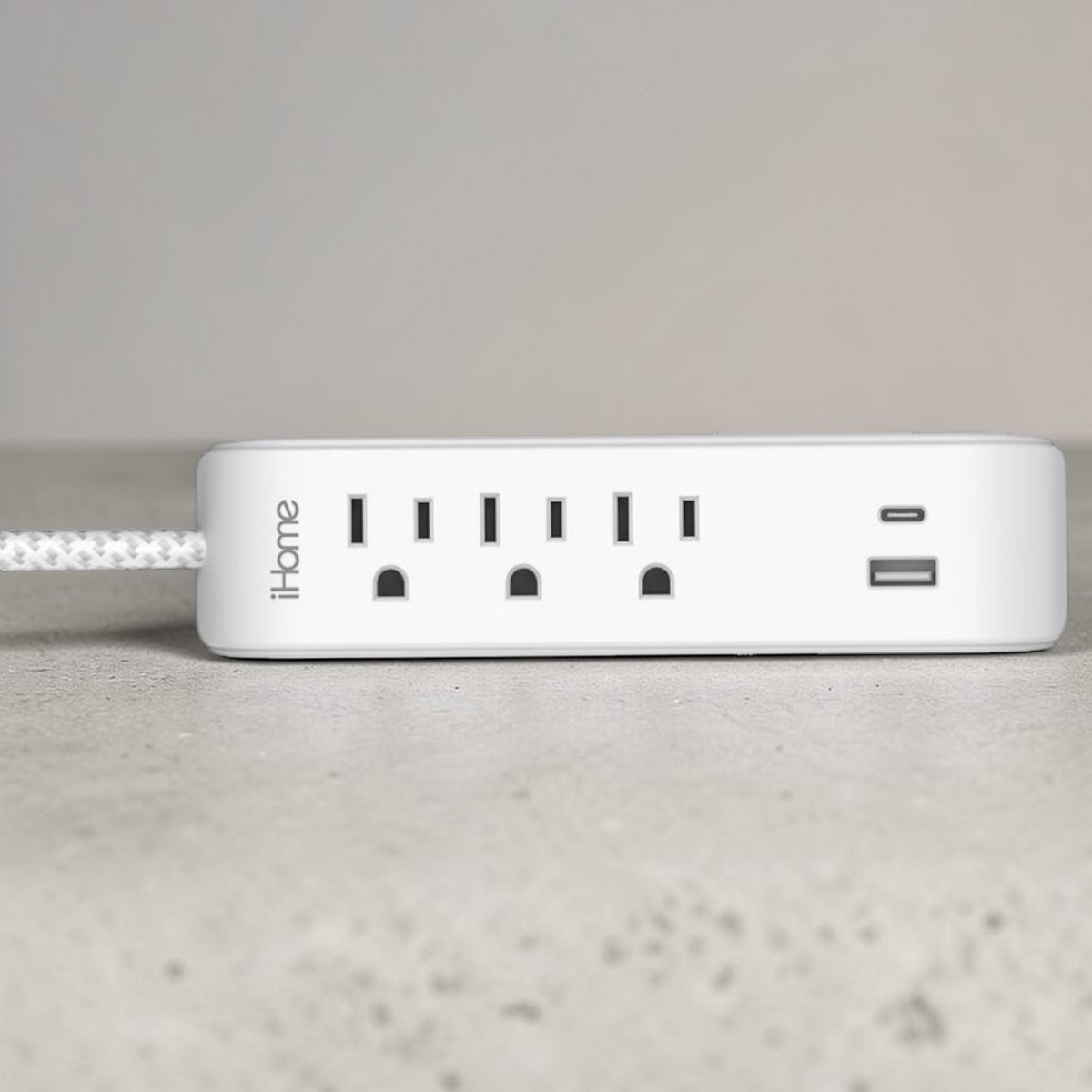 The iHome power strip with USB and braided cord comes in a sleek finish and features grounded AC outlets and USB Charging Ports to provide power from a distance — perfect for creating a centralized hub for your electronics at your house, office and wherever else you need power. Braided power cord is durable and strong for daily use and the low-profile flat plug helps you reach those tight spaces.