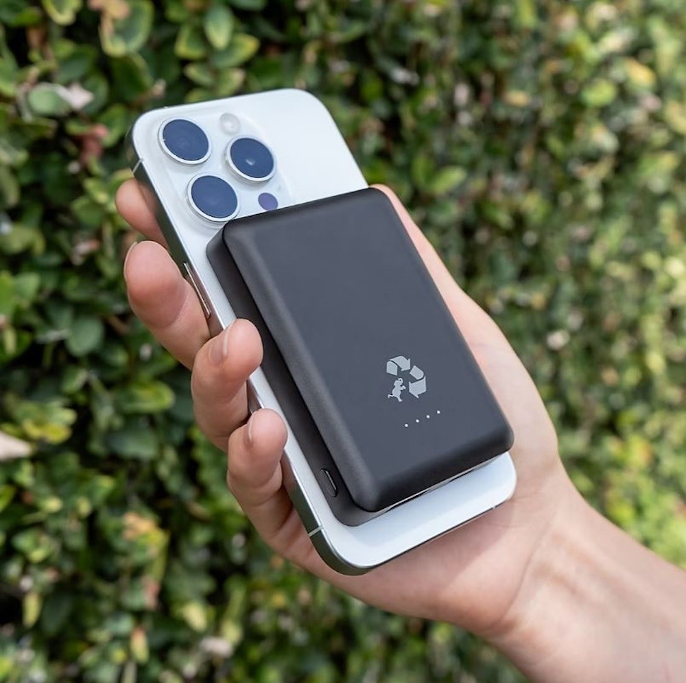 Magnetic wireless charging for your iPhone with a 5,000mAh Battery. Delivers up to 15W wireless charging speeds on contact and features a 20W Fast Charge Type-C Port (Input/Output) for recharging or powering non-wireless devices. 100% Ppost consumer recycled plastic, with 4 LED indicator lights. Plastic-free packaging, carbon neutral, and free e-waste recycling.