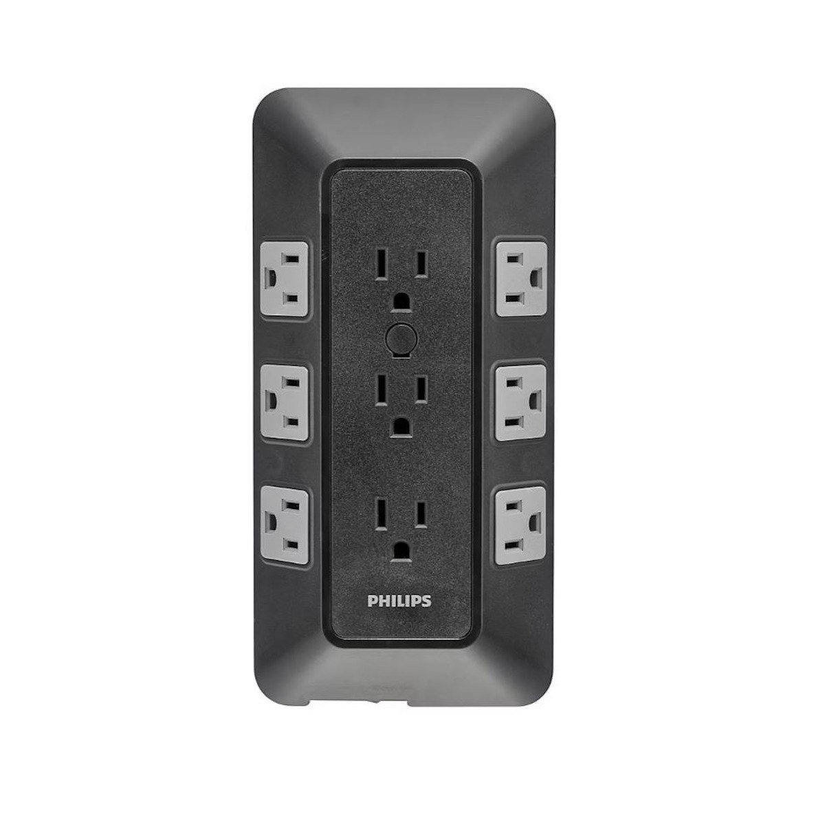The nine-outlet surge tap transforms your regular three-prong outlet into an efficient charging station — providing extra power for your household appliances, lamps, tools, seasonal lighting or electronics. In the event of a surge, the wall tap includes 1,000 joules of surge protection to keep your connected devices safe. Use the wall tap as part of your permanent home or office setup or, for holidays and special occasions, create a centralized location for powering a room’s worth of electronic lights and decorations. With this Philips surge protector and surge tap combo pack, powering electronics has never been simpler.Philips 17-Outlet Surge Tap/Protector Combo Pack - Black/Gray SPP9853B37