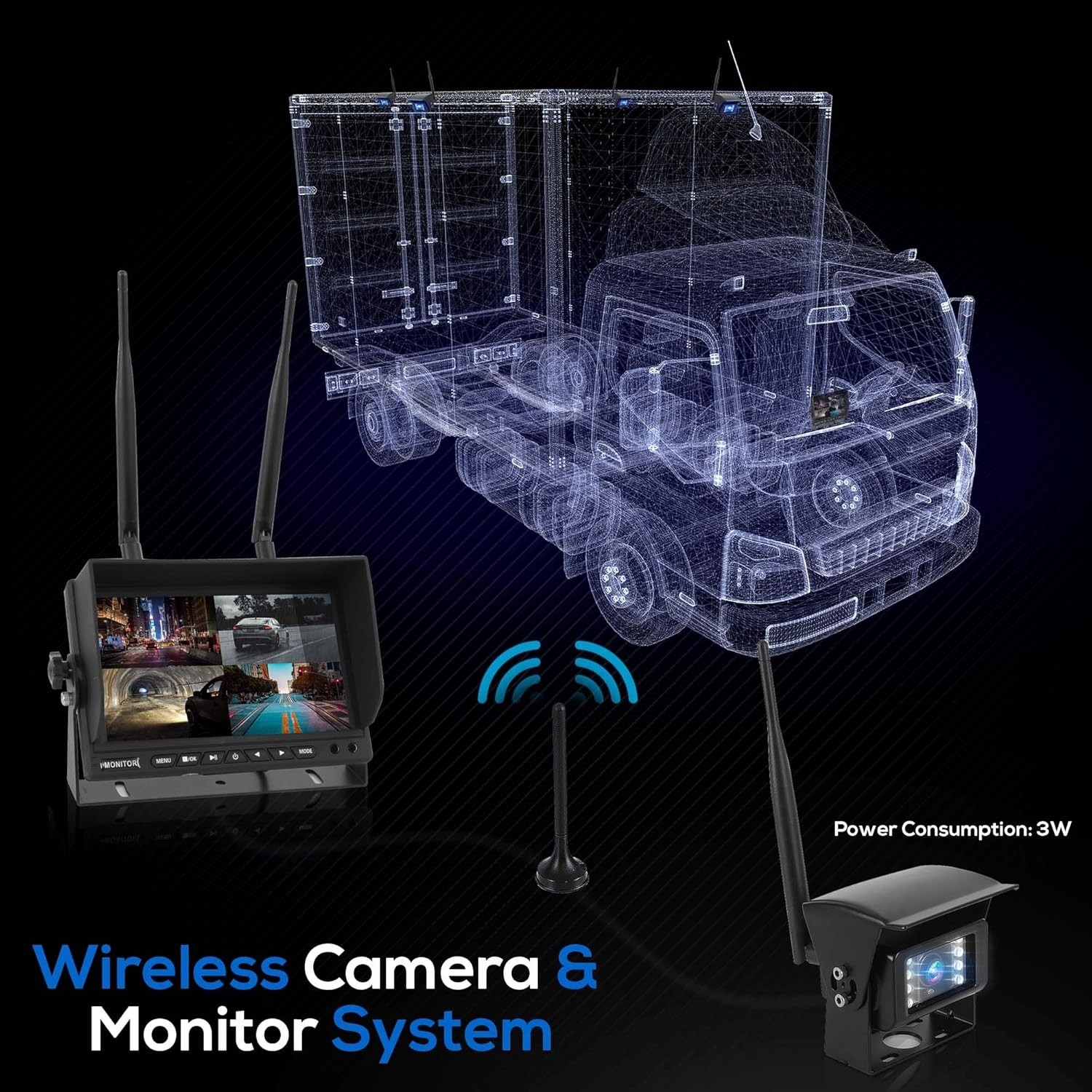 - 7” LCD SCREEN: The Pyle vehicle video monitor system comes with a slim 7" LCD display w/ 800x480 video resolution, built-in 2.4Ghz wireless video receiver and NTSC/PAL video system, and quad view display ability so you can monitor all 4 cams at once