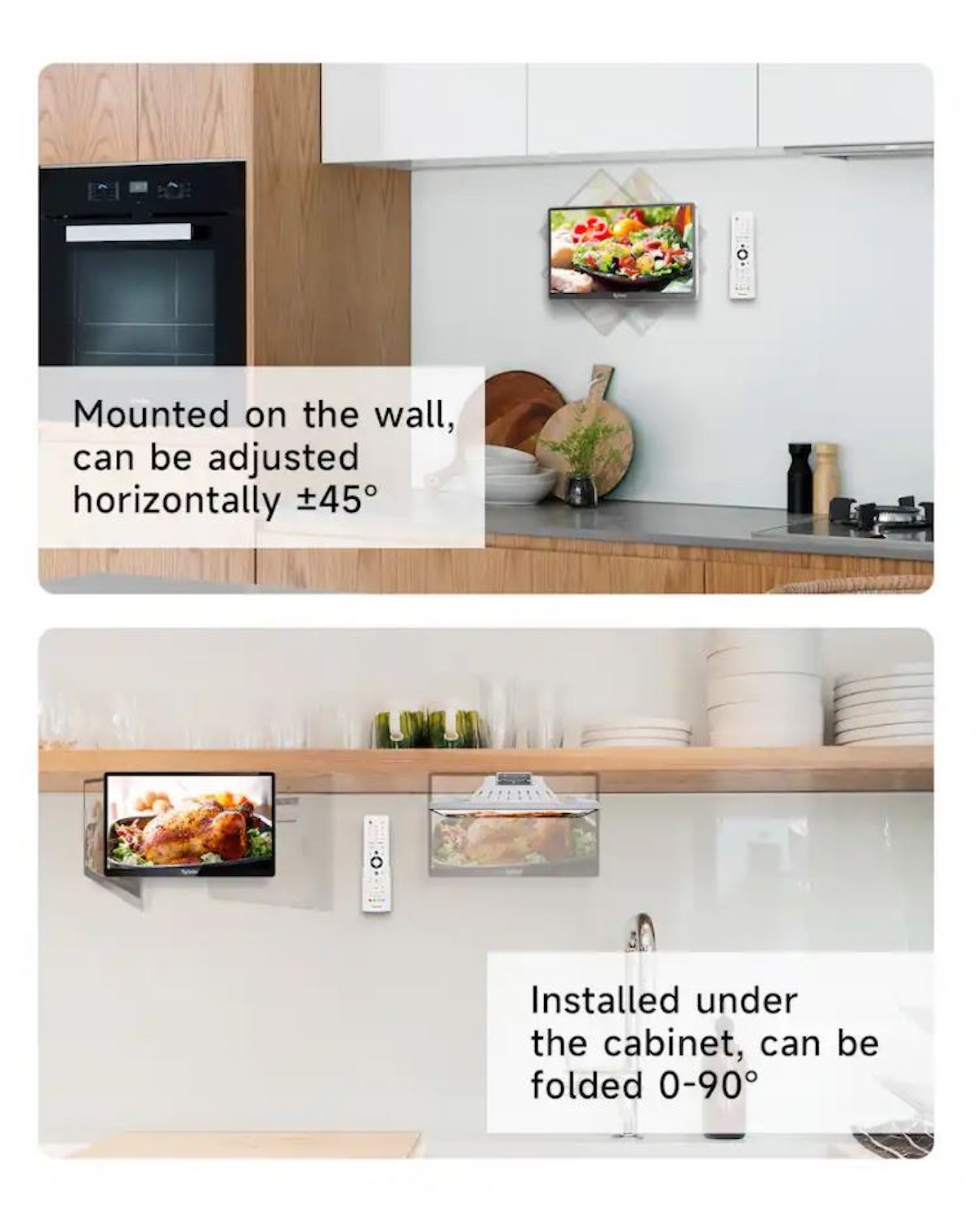 Enjoy entertainment while you cook with the SYLVOX 15.6" Under Cabinet Smart Kitchen TV. Featuring a crisp 1080p Full HD display and built-in Google TV, it gives you easy access to popular apps, streaming services, and live content directly from your kitchen. The foldable under-cabinet design saves counter space while the adjustable screen rotates for comfortable viewing from different angles. With WiFi, Bluetooth, and wireless casting support for both Android and Apple devices, you can quickly stream videos, recipes, or music from your phone. Easy to install and designed for compact spaces, this smart kitchen TV is perfect for kitchens, RVs, workshops, and small living areas.
