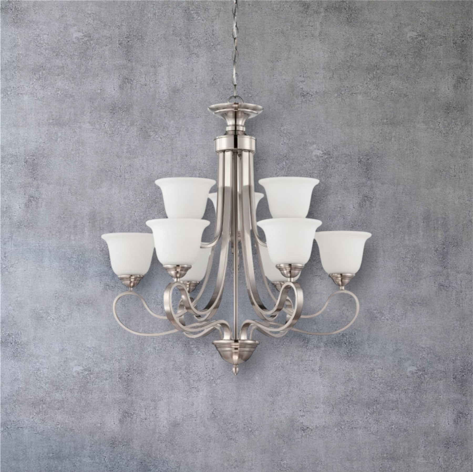 Sunset 9 Lights 2-Tiers Chandelier Bright Satin Nickel F16059-80