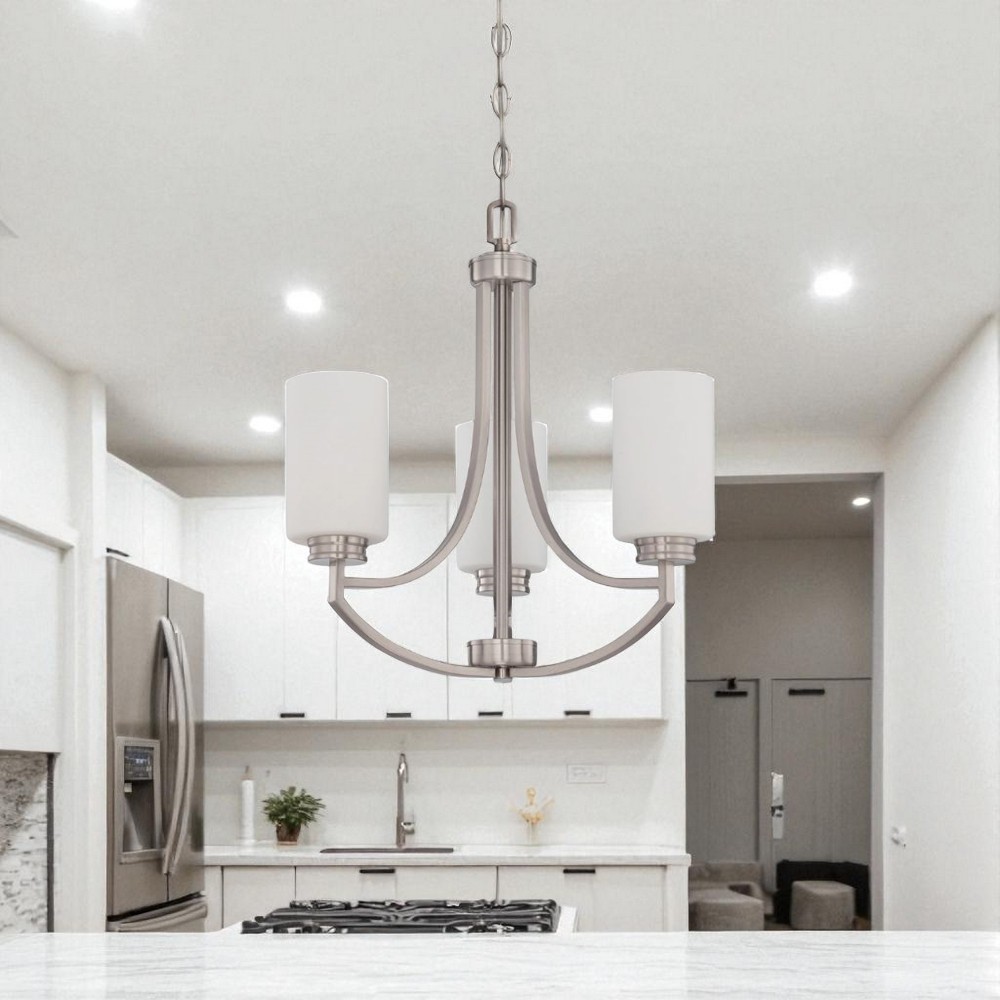 Sunset Lighting F18003-80 Dalton Three Light Chandelier- Opal Etched Glass, Dimmable - With Bright Satin Nickel Finish