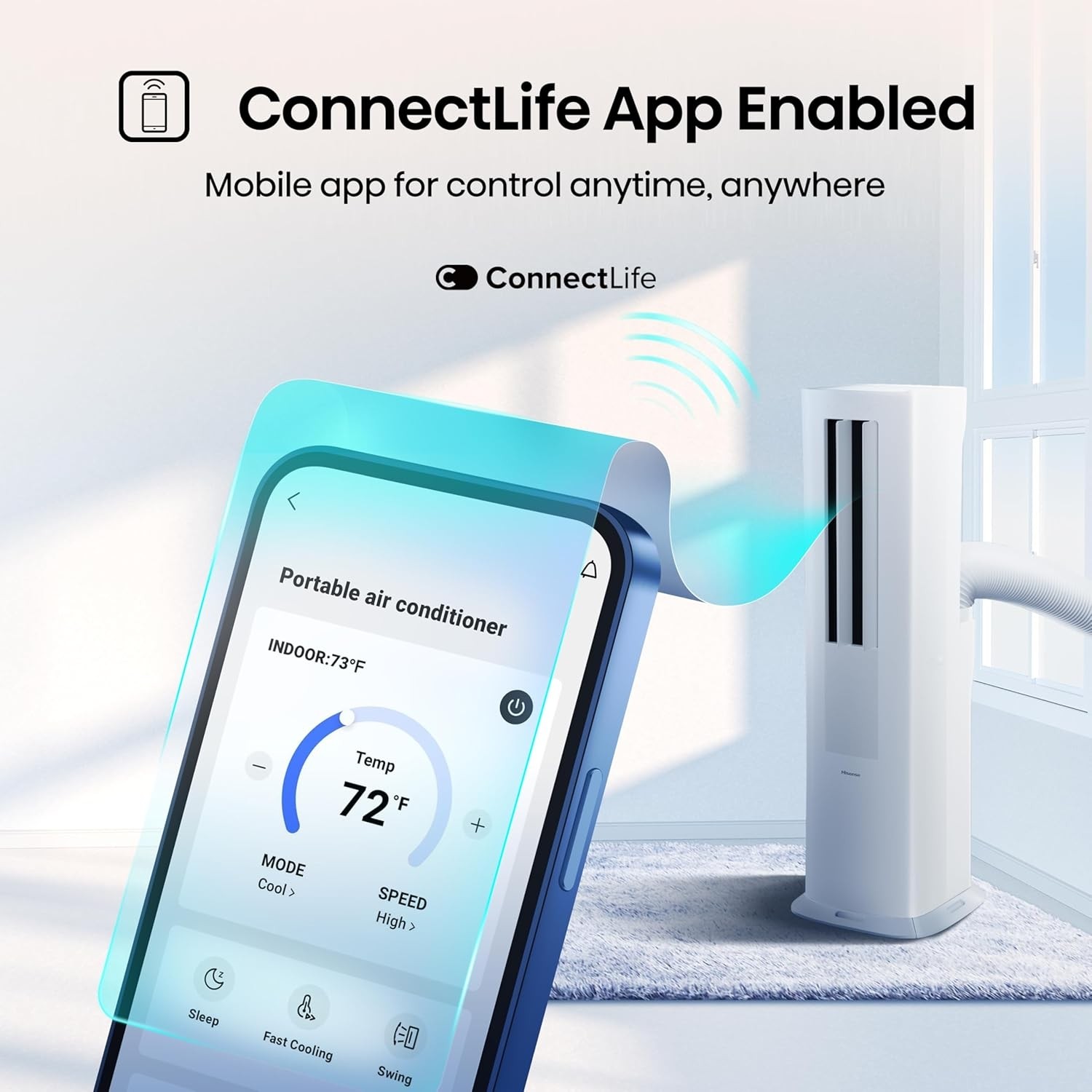 - Hisense 8,000 BTU SACC Inverter Portable AC Smart with Heat Pump- Dual Hose Tower