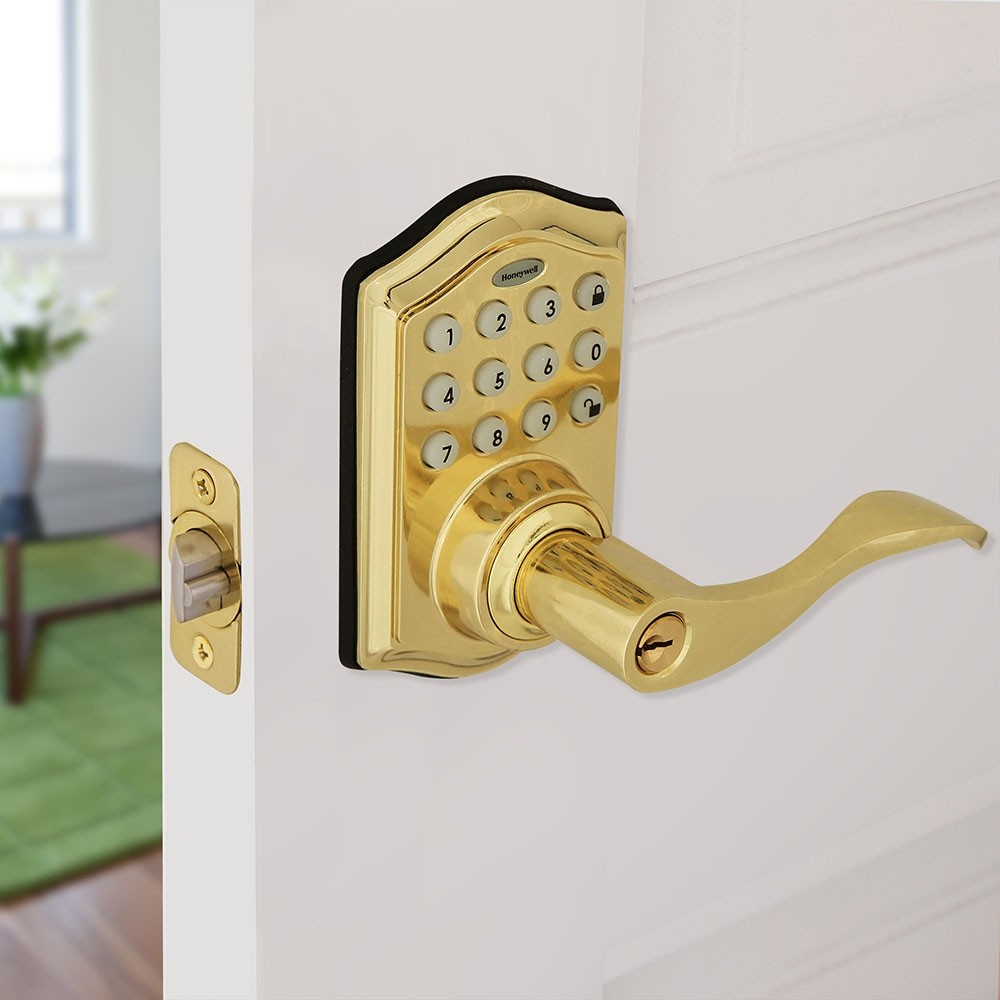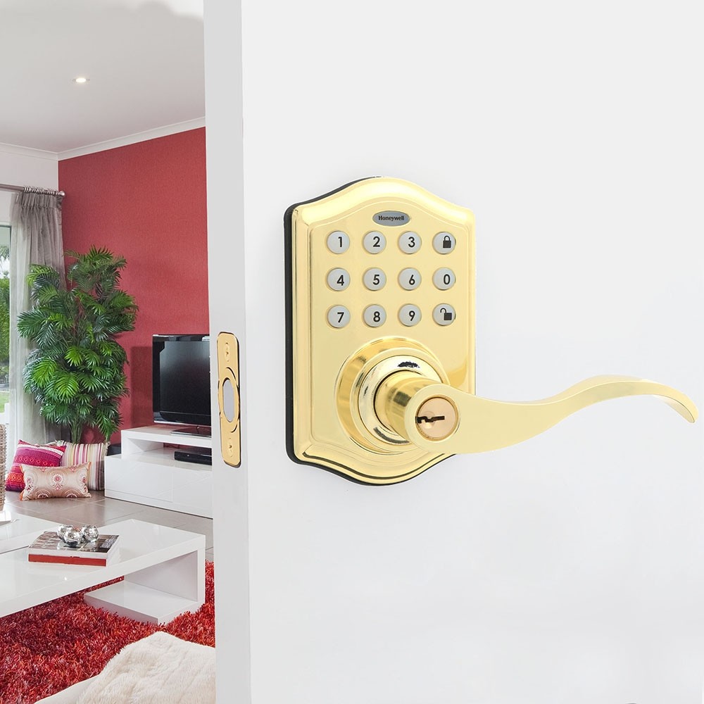 Honeywell Electronic Entry Lever Door Lock with Keypad in Polished Brass, 8734001 Features: