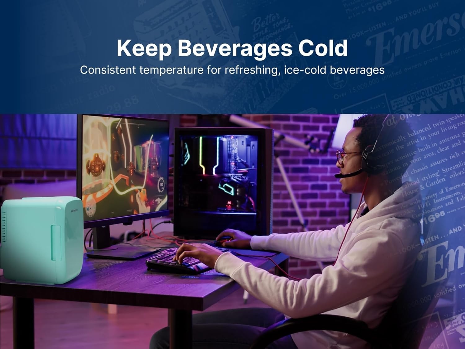 The Emerson EFC-5000 mini fridge offers a 4-liter capacity, capable of holding up to 6 cans. Its compact size makes it ideal for storing drinks and snacks in small spaces, whether you're at home, in the office, or on the road.