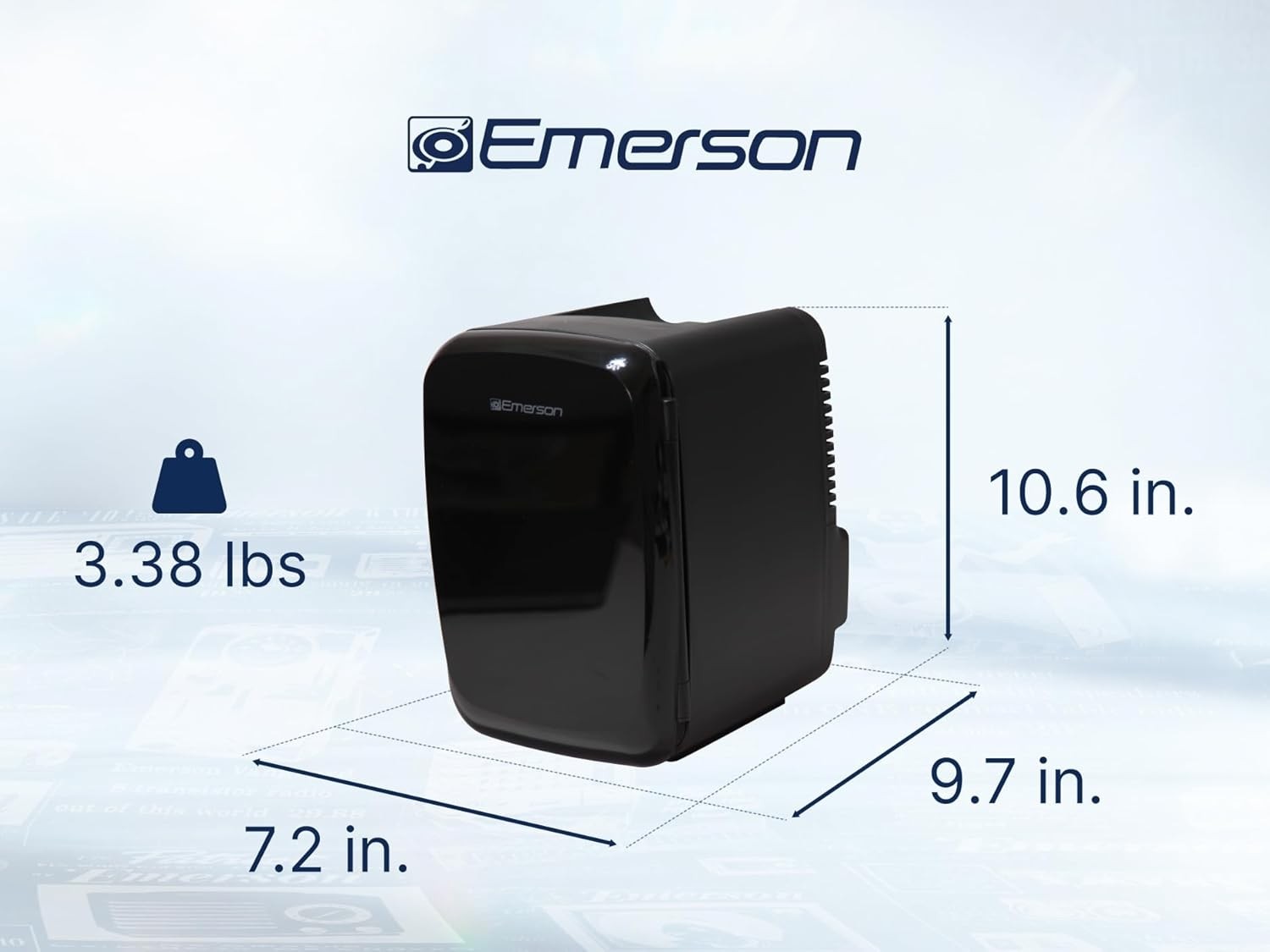 The Emerson EFC-5000 Portable Mini Fridge Cooler is the perfect compact solution for keeping your favorite beverages chilled while on the go. This sleek and stylish mini fridge holds up to 6 cans, making it ideal for personal use in a variety of settings—whether you’re in your office, dorm room, or taking it along on road trips, camping, or outdoor events. With both AC and DC power options, this portable mini fridge can be easily powered through standard home outlets or your vehicle’s 12V socket, making it incredibly versatile. It’s the ultimate travel companion, providing you with cool, refreshing drinks wherever you are. The lightweight and compact design ensures it fits perfectly on desktops, countertops, or in your car, allowing you to bring it just about anywhere. The Emerson EFC-5000 is not only practical but also eco-friendly. It uses advanced thermoelectric cooling technology, which efficiently chills your drinks without the need for noisy compressors or harmful refrigerants. This makes it both quiet and environmentally conscious while delivering reliable cooling performance. Designed with convenience in mind, the fridge features a removable shelf to accommodate different items, such as small snacks, making it easy to organize and clean. Its carry handle enhances portability, allowing you to effortlessly move it from place to place. Whether you’re looking to keep your drinks cool at home or want a reliable mini cooler for your outdoor adventures, the Emerson EFC-5000 Portable Mini Fridge Cooler ensures you’ll always have cold refreshments on hand.