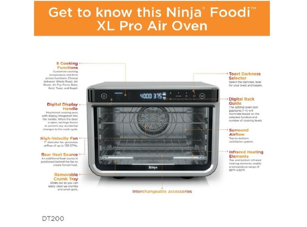 Ninja-DT200-Foodi-8-in-1-XL Pro Air Fry Oven Large Countertop Convection Oven Features: