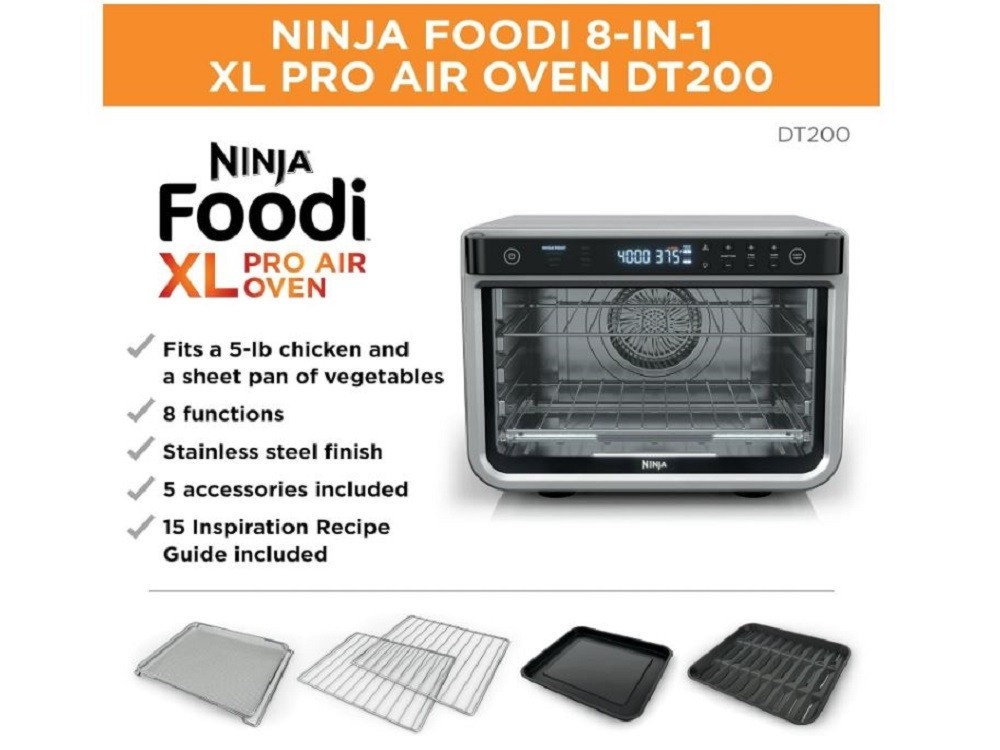 This Ninja-DT200-Foodi-8-in-1-XL Pro Air Fry Oven Large Countertop Convection Oven is in New Open Box condition.