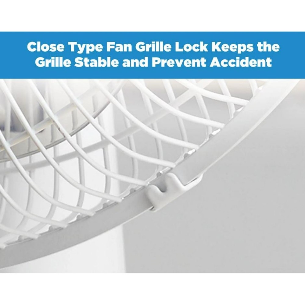 - Adjustable-tilt fan head settings, down 8° or up 16° to direct airflow