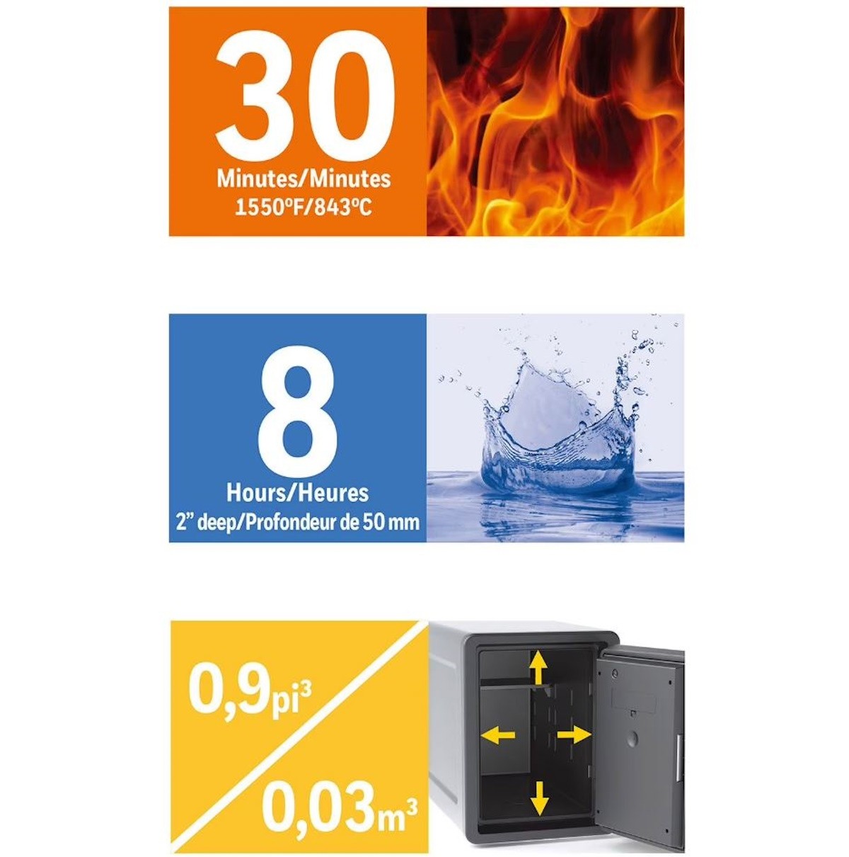 - Fire Protection: 30 minute UL rated fire safe protects documents in conditions up to 1550°F