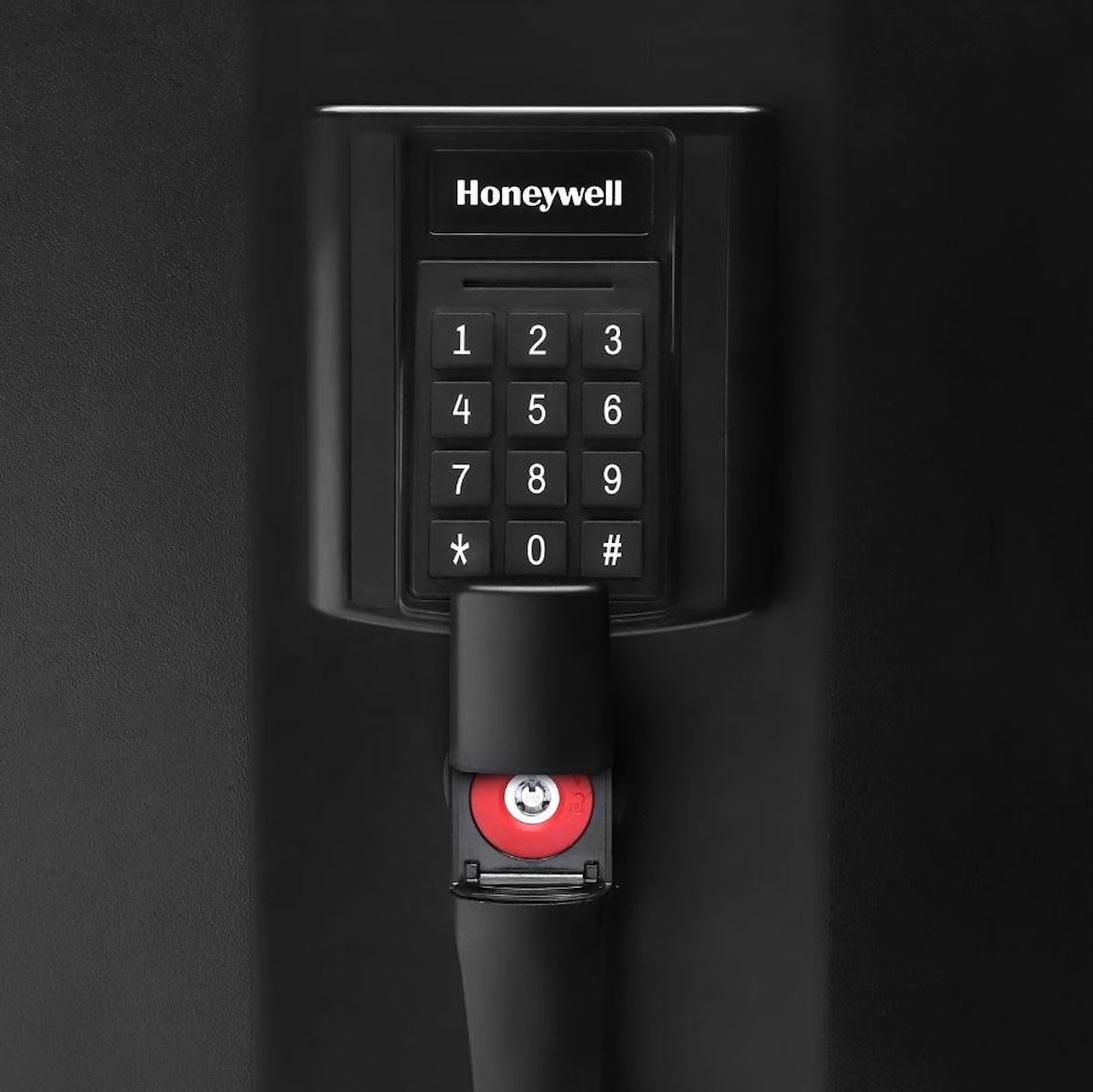 The Honeywell 2911 comes with hidden key access and 2 emergency override access keys, 1 removable/adjustable shelf (room to add a second shelf), and a scratch resistant powder coat finish.