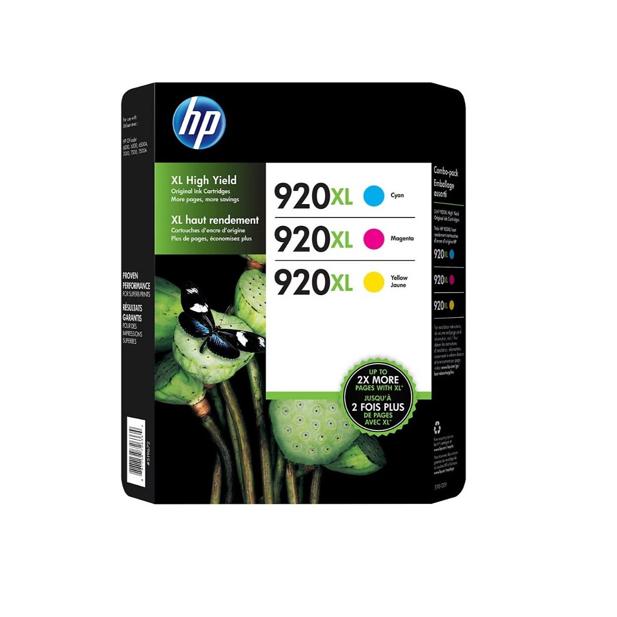 Get 3 color cartridges in 1 convenient pack. These 920XL color cartridges offer quality HP ink for precise, detailed print jobs. The combo cartridge pack contains 1 each cyan, yellow and magenta HP 920XL ink cartridges. They are compatible with a wide selection of HP printers. Plus, HP cartridges are designed with the environment in mind with free print cartridge recycling via the HP Planet Partners Recycling Program.