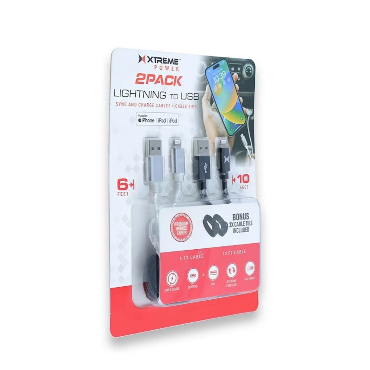 Xtreme 6' and 10' Premium Braided Cables Lighting to USB, 2 pack XMS8-1039 Features:- Tangle free braided cables for sync and charge use