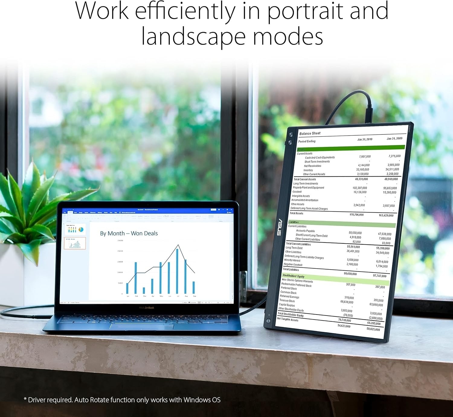 ASUS ZenScreen 15.6" 1080p 5ms 60Hz FHD Portable Monitor, IPS Panel, Ultra Thin, Kickstand Design MB16ACVR