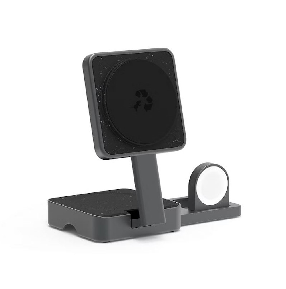 Experience unparalleled convenience with our foldable, magnetic wireless charger, designed for simultaneous charging of your iPhone, Apple Watch, and Air Pods. Its compact, foldable design not only makes it easy to carry but also allows for versatile charging angles, ensuring a seamless and efficient charging experience. 100% post-consumer recycled plastic, Plastic Free packaging, Carbon Neutral, and Free e-waste recycling.