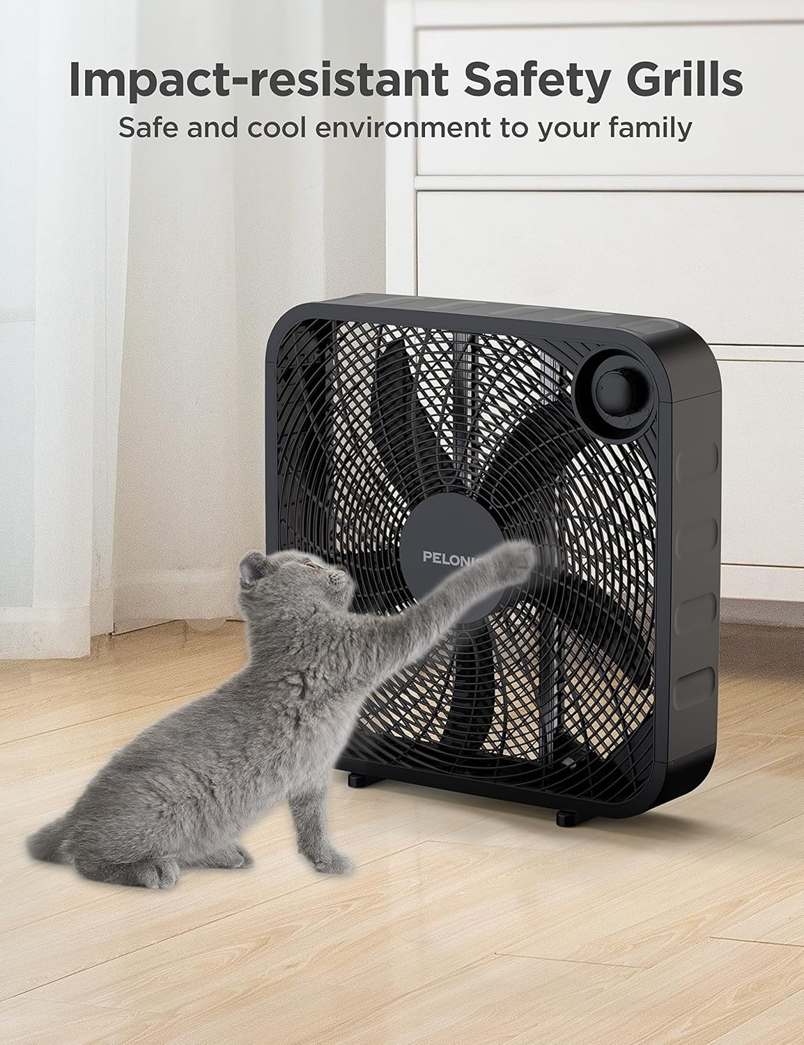 The Pelonis PFB50A2ABB-V 3-Speed Box Fan offers powerful air circulation to help you stay cool and comfortable. With a 3-speed rotary control, you can easily adjust the airflow to suit your needs. The high-performance blades and safety grill ensure safe and durable operation, while the lightweight design with a convenient carrying handle makes it easy to move the fan as needed. This energy-efficient box fan can assist your air conditioner, helping you save money on your utility bills.