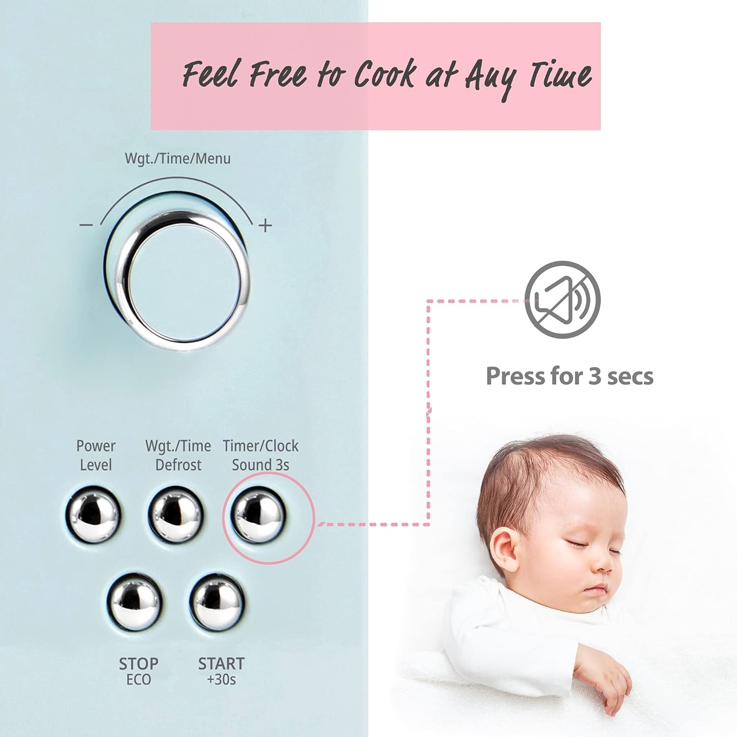 The COMFEE' CM-M091AGN Retro Microwave in green offers a stylish and functional addition to your kitchen with its fun retro design. This 0.9 cu.ft, 900W microwave features multi-stage cooking, allowing you to defrost and cook in one go, along with 9 convenient preset menus for items like popcorn, pizza, and vegetables. It also includes a kitchen timer, mute function, ECO mode, a bright LED digital display, and express buttons to easily add 30 seconds of cooking time, making meal preparation simple and efficient.