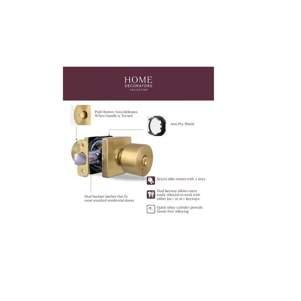 Features Adjustable Backset, Easy Installation, Rekeying Lock