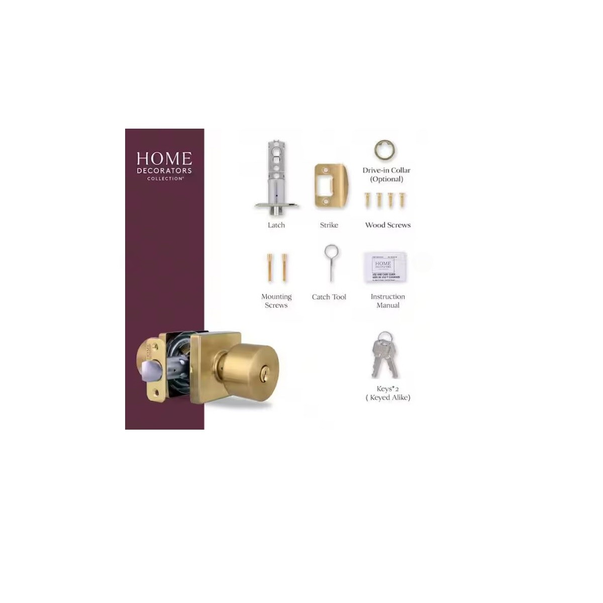 Elevate Your Doorway with Timeless Elegance. Introducing the Ridgeway Brushed Gold Keyed Entry Door Knob with Square Rose. This exquisite piece is a perfect blend of modern sophistication and classic charm. Crafted with precision and finished in a luxurious brushed gold, it adds a touch of opulence to any home. Key Features: - Sleek and Stylish: The square rose and clean lines create a contemporary aesthetic that complements various interior styles. - Dual Keyway: Allows you to have your lock rekeyed using either a KW1 keyway or an SC1 keyway for added security and convenience. Durable Construction: Made from high-quality materials, this door knob is built to last, ensuring long-lasting performance.- Easy Installation: With a simple and straightforward installation process, you can quickly upgrade your door hardware without any hassle.-Versatile Design: The brushed gold finish adds a touch of luxury to your home, making it a perfect choice for both traditional and modern settings. Upgrade your home's entrance with the Ridgeway Brushed Gold Keyed Entry Door Knob with Square Rose. Order yours today and experience the difference.