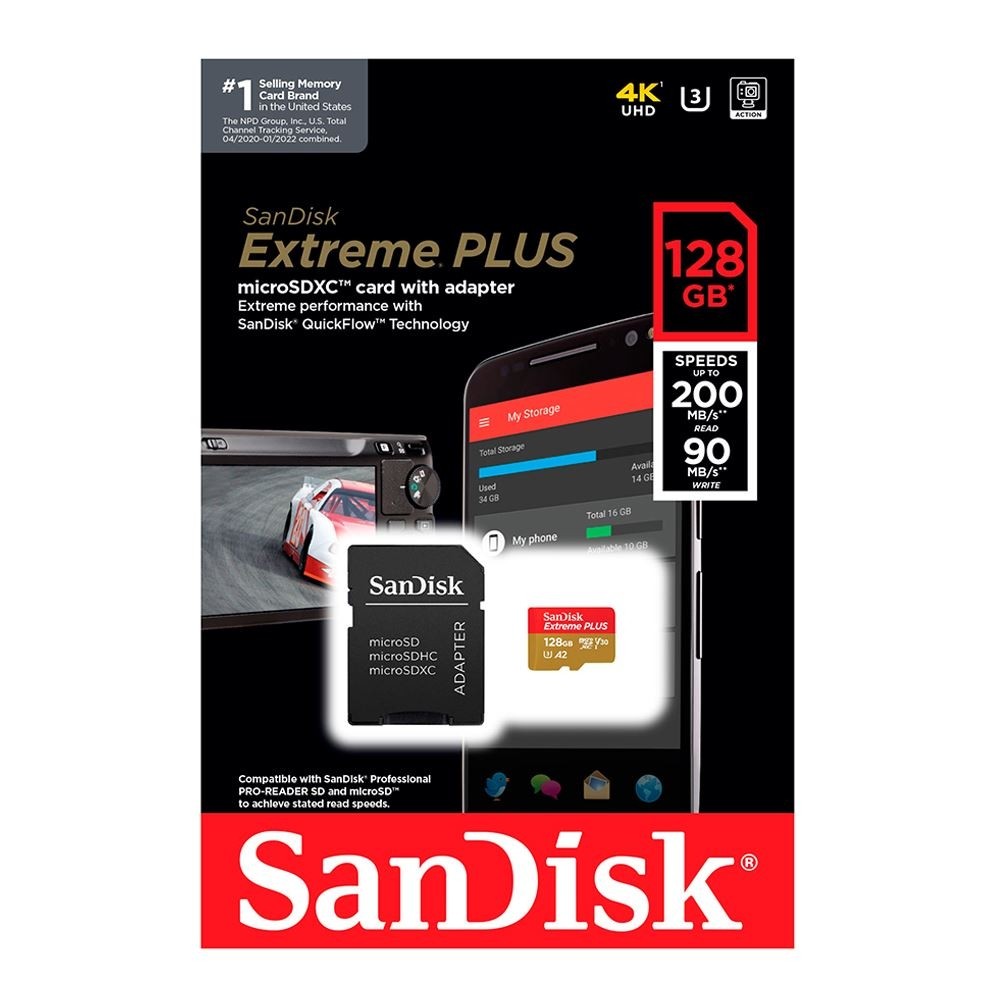 SANDISK - Extreme PLUS 128GB MicroSDXC UHS-I Memory Card SDSQXBD-128G-AN6MA Specifications: