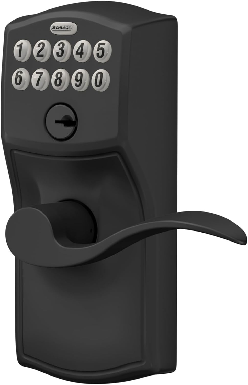Schlage Camelot Black Electronic Keypad Door Lock with Accent Handle & Flex Lock