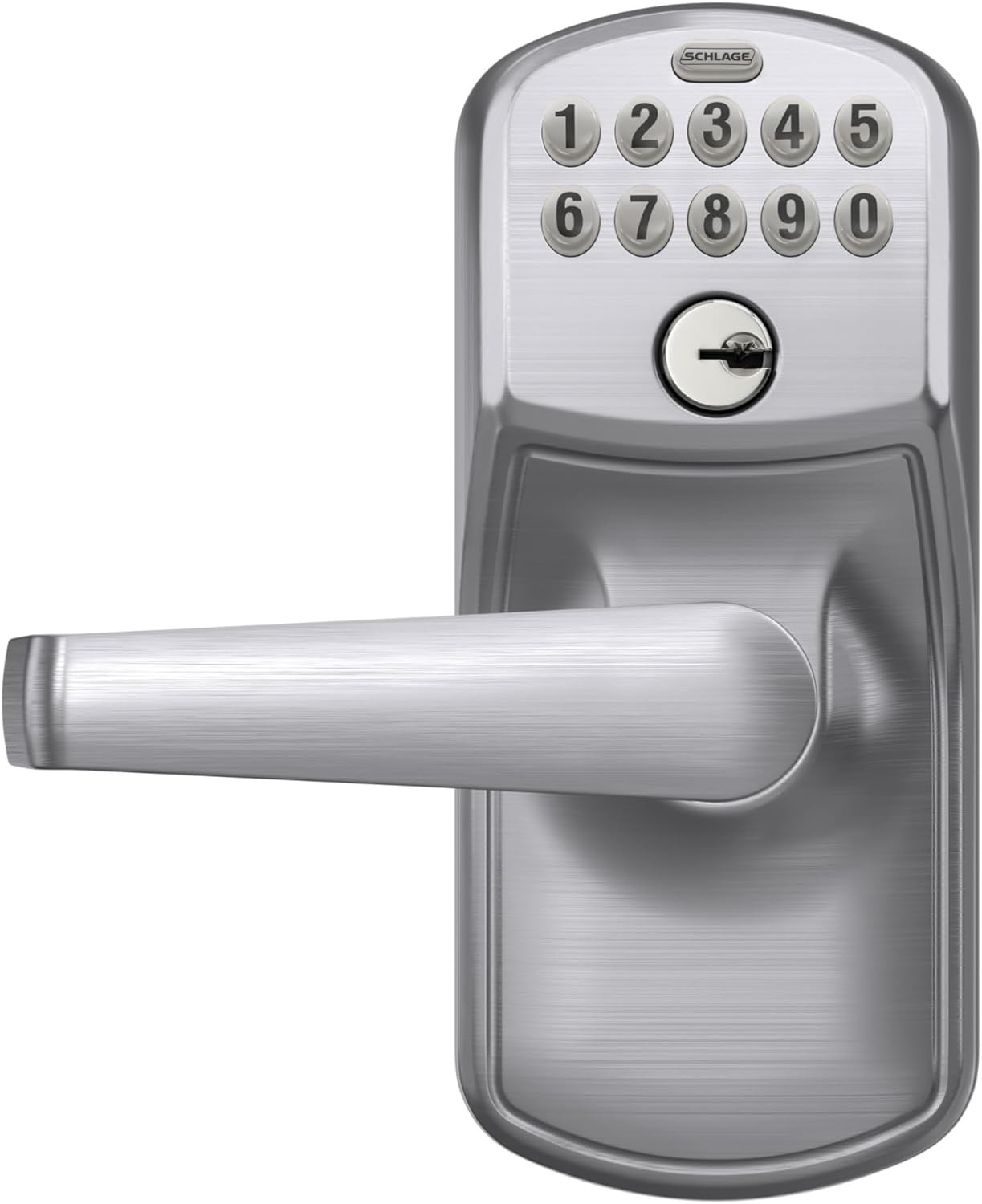 Certified highest AAA rating in residential Security, Durability and Finish by industry experts BHMA.Schlage FE595 PLY 626 ELA Plymouth Keypad Entry with Flex-Lock and Elan Style Levers, Brushed Chrome