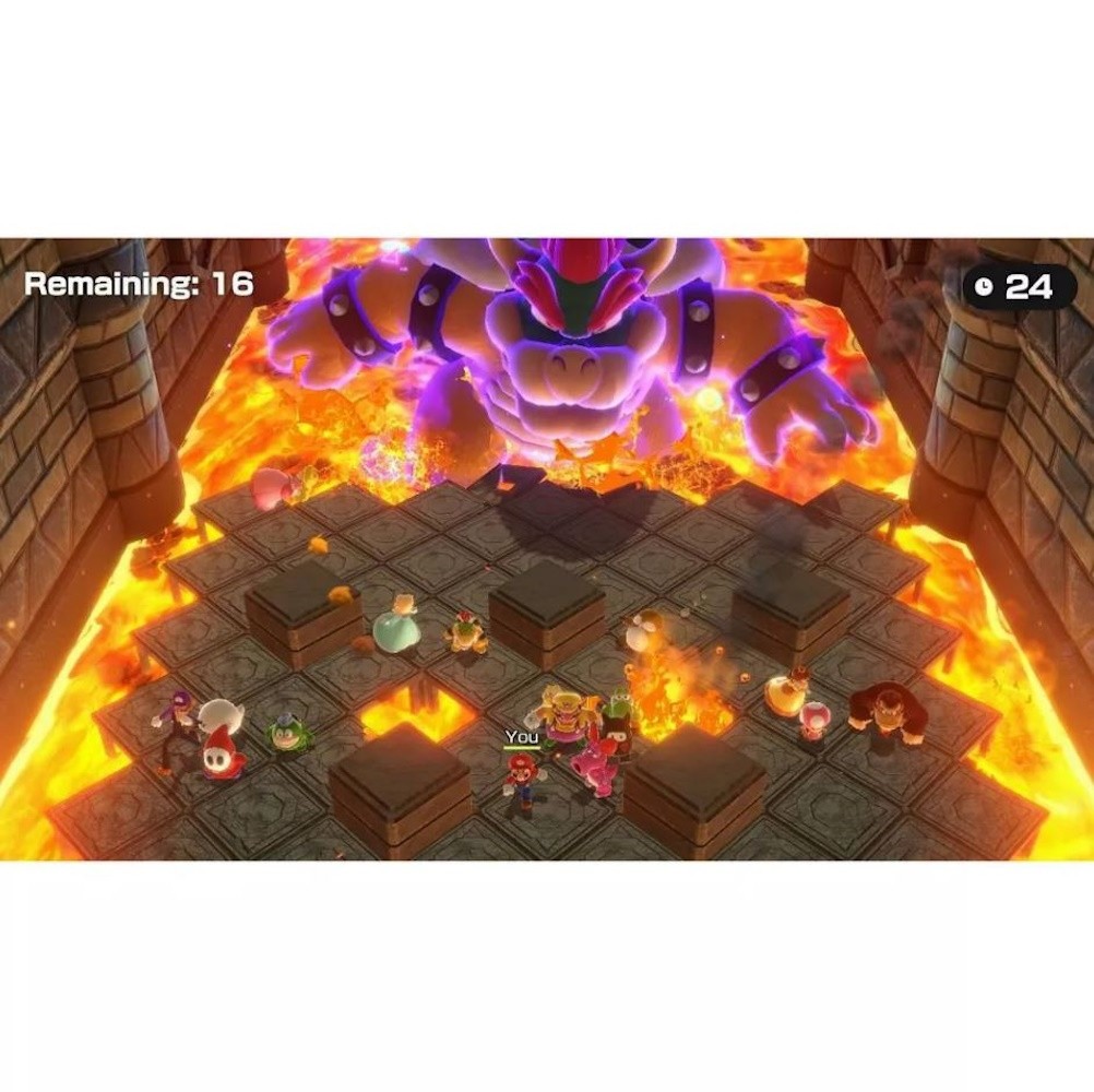 Join a jamboree jam-packed with more minigames than any Mario Party game to date! Gather your friends, pick a board, and have a Mario party. Choose your character, roll some dice, and compete in an assortment of minigames to see who can get the most stars. From running through merry-go-rounds to motion-control minigolf, there are seven boards and over 110 minigames to play! Go with the flow in Goomba Lagoon, search the mall for stars in Rainbow Galleria, or revisit the classics of Western Land and Mario’s Rainbow Castle. With 22 playable characters, including newcomers Pauline and Ninji, Pro Rules for more serious competition, and a local single player mode, there’s something for every kind of partygoer! Take the fun online in Koopathlon and Bowser Kaboom Squad. Race across the party board in Koopathlon, a series-first 20-player online competition to see who can rack up the highest scores in minigames like the fast-paced Lane Change. The higher your score in each round, the faster you’ll get to the goal. If cooperative play is more your style, take on an Impostor Bowser in the 8-player online Bowser Kaboom Squad mode. Both online modes have worldwide rankings so you can see how you measure up against the best. You can also play the standard Mario Party mode with friends, family, and others online! Get moving in Rhythm Kitchen, Toad’s Item Factory, and Paratroopa Flight School. Motion-control games are back! Cook to the beat in the Rhythm Kitchen cooking show, help Toads piece together party items in Toad’s Item Factory, and soar through the sky in Paratroopa Flight School. There are also motion-control minigames in the standard Mario Party mode that you can toggle on or off. Party online on us— 3-month Nintendo Switch Online Individual Membership is included! You’ll need an Internet connection and a Nintendo Switch Online membership to play in online modes, but don’t worry if you’re not a current Nintendo Switch Online member. If you pre-order or purchase the game prior to March 31, 2025 at 11:59 p.m. PT, you’ll receive a Nintendo eShop code for a 3-month Nintendo Switch Online Individual Membership (not valid with Nintendo Switch Online Family Memberships or Nintendo Switch Online + Expansion Pack memberships)! The code, which never expires, will come either in a packed-in pamphlet (while supplies last) if you purchased the physical version, or by email if you purchased digitally. Joy-Con controller required for motion-control minigames. Motion-control minigames not compatible with Bowser Kaboom Squad and Koopathlon modes or Nintendo Switch Lite. Any Nintendo Switch Online membership (sold separately) and Nintendo Account required for online features. Membership auto-renews after initial term at the then-current price unless canceled. Not available in all countries. Internet access required for online features. Terms apply. Additional accessories may be required for multiplayer mode. Sold separately. Included membership auto-renews after initial term at the then-current price unless canceled. Not available in all countries. Internet access required for online features. Terms apply.
